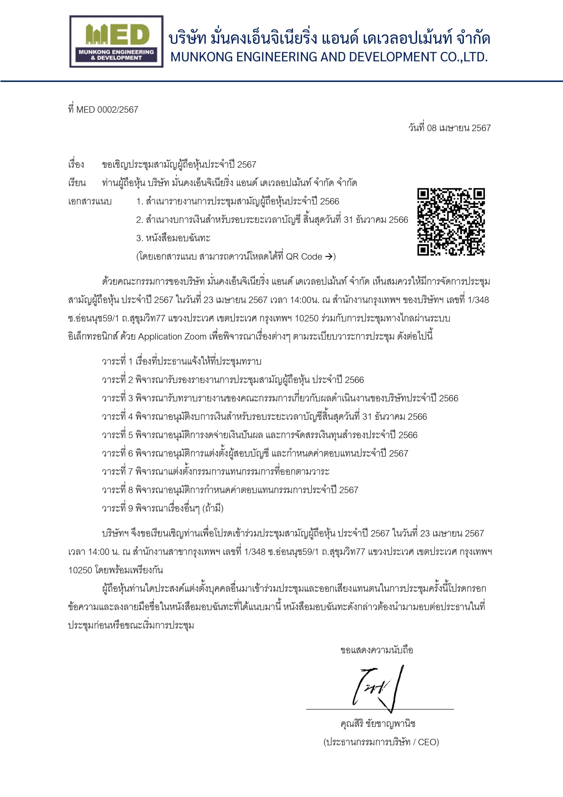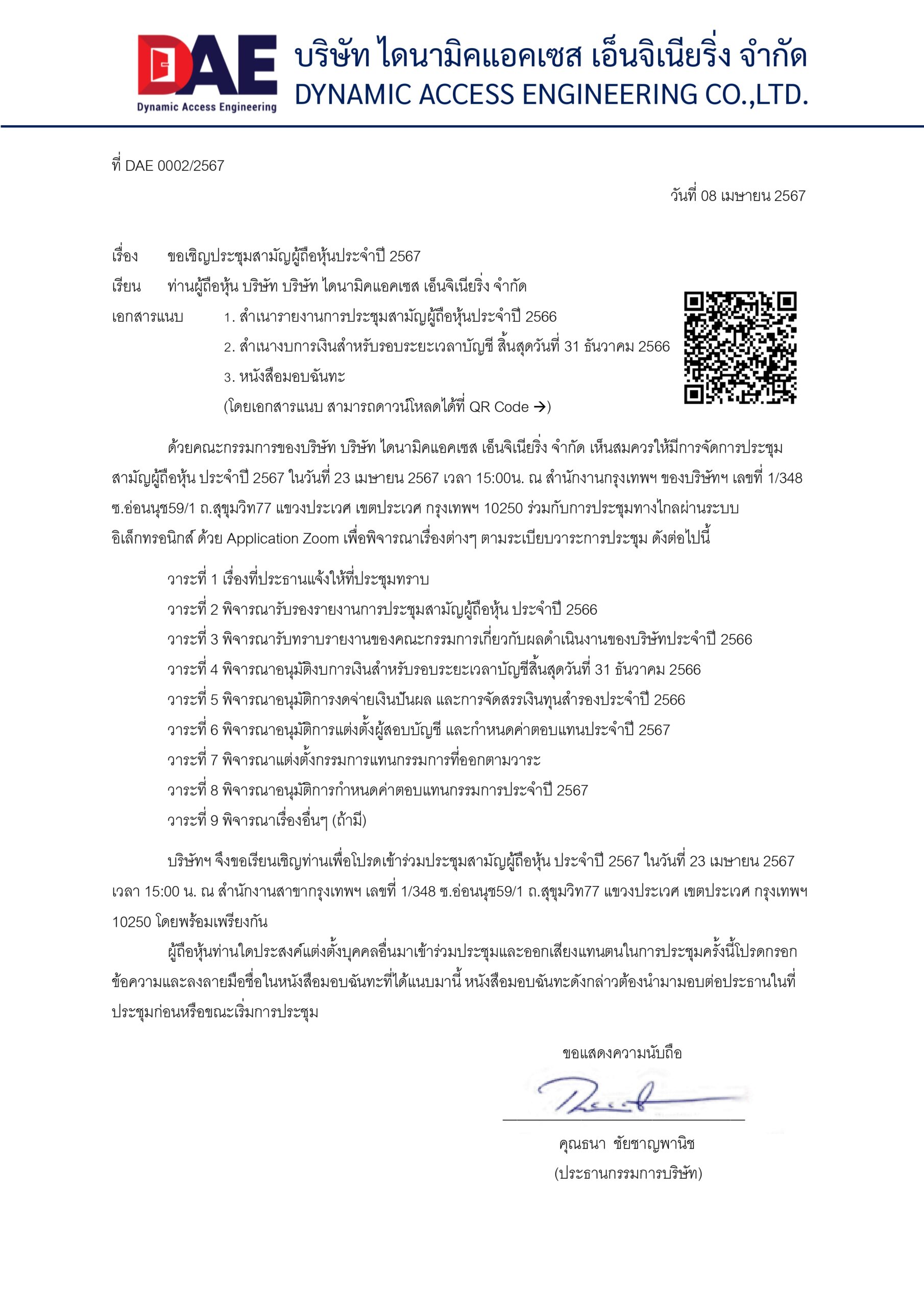 ขอเชิญประชุมสามัญผู้ถือหุ้นประจำปี 2567